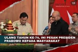 Ulang tahun ke-74, ini pesan Presiden Prabowo kepada masyarakat Menteri Sekretaris Negara Prasetyo Hadi menyampaikan pesan dari Presiden Prabowo Subianto yang memperingati hari ulang tahun ke-74.