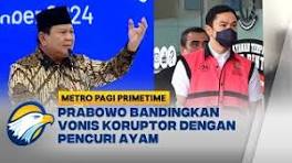 Presiden Prabowo Bandingkan Vonis Koruptor dengan Pencuri Ayam - [Primetime News] MetroTV, Presiden RI Prabowo Subianto membandingkan vonis ringan yang terhadap terdakwa Harvey Moeis dengan hukuman berat yang divonis untuk ...