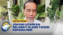Jokowi Mengucapkan Selamat Ulang Tahun ke-52 kepada PDIP - [Metro Siang] - YouTube MetroTV, Presiden ke-7 Republik Indonesia, Joko Widodo, mengucapkan selamat kepada PDI Perjuangan yang sudah berusia setengah abad lebih.