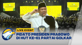 [FULL] LIVE EVENT - Pidato Presiden Prabowo di HUT Ke-61 Partai Golkar - YouTube MetroTV, Presiden Prabowo Subianto menghadiri puncak peringatan Hari Ulang Tahun (HUT) ke-61 Partai Golkar yang mengusung tema "Doa untuk Bangsa".