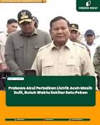 Presiden Republik Indonesia, Prabowo Subianto, mengakui bahwa pemulihan ... - Facebook Presiden Republik Indonesia, Prabowo Subianto, mengakui bahwa pemulihan pasokan listrik di Aceh pascabencana banjir bandang dan longsor masih ...